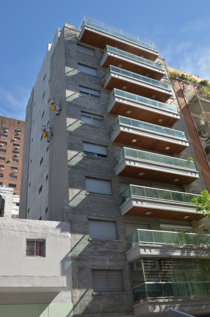2° Reparación de Mampostería: Una vez identificada la causa se procede a arreglarla para que en un futuro no vuelva a provocar los mismos problemas. Se retira todo el revoque en mal estado hasta lograr una superficie firme. Los hierros estructurales que se encuentren a la vista serán viruteados y tratados con SIKA TOP ARMA-TEC110. Se reconstruyen los revoques deteriorados y en caso de encontrar el hormigón descubierto se utilizara un puente de adherencia.